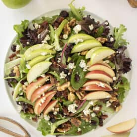Storage: If you have any leftover salad, you can transfer it to an airtight container and keep it in the fridge for another day. For longer-term storage, optionally toss apples with lemon juice, assemble your salad but don’t add your vinaigrette or dressing. Store the salad and dressing separately in the fridge for 2-3 days.