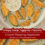 Cream Cheese Jalapeno Poppers are so easy to make. What’s not to love about a fresh jalapeño stuffed with a warm, gooey cheese filling that’s topped with a buttery, crunchy bread crumb? Make this recipe for the BEST crowd pleasing, party or Game Day appetizer.