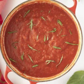 Hands down, this it THE BEST Marinara Sauce recipe for all of your Italian dishes. It has tons of flavor from the tomatoes, veggies and spices. Plus, it’s so easy, requiring about 30 minutes.